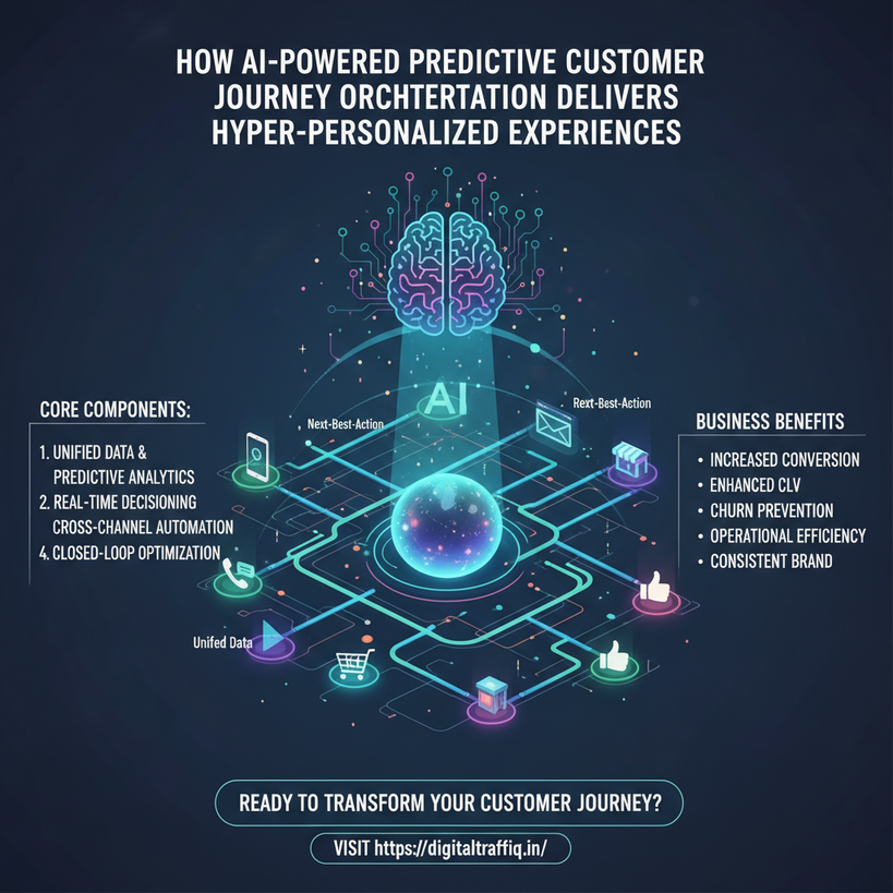 In today’s fragmented digital landscape, customers interact with brands across a dizzying array of channels—social media, email, websites, apps, and physical stores. The old linear marketing funnel is dead, replaced by a complex, non-linear journey that is unique to each individual. For businesses, this presents both a monumental challenge and an unprecedented opportunity. The challenge is chaos; the opportunity is personalization at scale. This is where AI-powered predictive customer journey orchestration emerges not just as a tool, but as a fundamental strategic capability. At Digital Traffiq, we specialize in transforming this complexity into clarity, using advanced AI to predict, personalize, and perfect every customer interaction.
